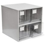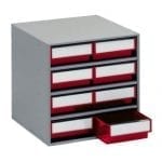 The cabinets can be piled vertically or hung on walls. Available colours include red, blue, green and clear and each cabinet is constructed from clear polystyrene. Other accessories that we have on offer include dividers and retaining bars.