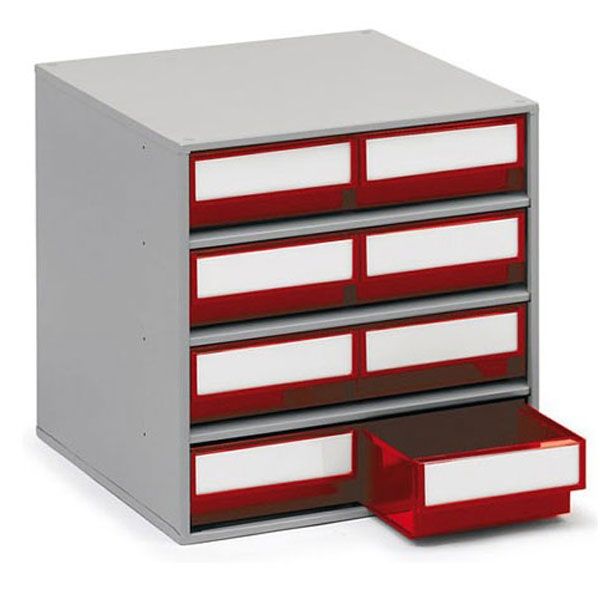The cabinets can be piled vertically or hung on walls. Available colours include red, blue, green and clear and each cabinet is constructed from clear polystyrene. Other accessories that we have on offer include dividers and retaining bars.