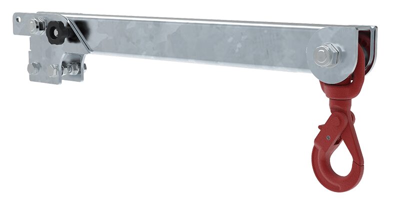 The crane is swivelled manually around the main shaft with precision bearings that make the rotation smooth and effortless.