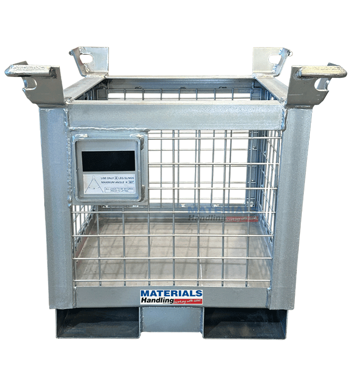 Fitted with fork pockets and crane lugs, the cages are certified to relevant safety standards and provide an overhead lifting solution.