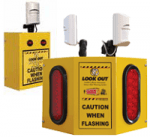 Hall Door Monitors use motion sensors to detect when pedestrians or forklifts approach a pedestrian doorway. Before either passes through, the activity and motion are captured, alerting operators of the activity via flashing LEDs. This response creates a safety zone for employees to work harmoniously together and free from collisions and injuries in the workplace.