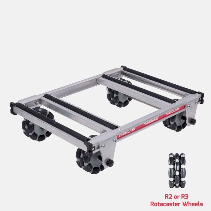 + Add to Quote RequestRotacaster Dolly is a lightweight bolt together, durable aluminium frame, fitted with fixed recessed multi-directional Rotacaster wheels. This means no swivel mechanisms (other than axles) to damage or maintain ensuring consistent, safe and trouble free performance for the life of the product. There are three sizes (standard, wide & curved) all with 250kg capacity and with non-slip rubber strips on the deck. Each is fitted with 4 x double row (R2) Rotacasters.