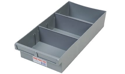 + Add to Quote RequestStrong and durable small parts trays made from grey polypropylene to resist solvents and oils. There are two widths 100 and 200mm and these are available in 300, 400 and 600mm depths (length). SPT012, SPT017, SPT024 and SPT025 supplied with 2 removable dividers. SPT027 and SPT028 supplied with 5 removable dividers. Simply position the dividers to suit your needs. Additional dividers are available.