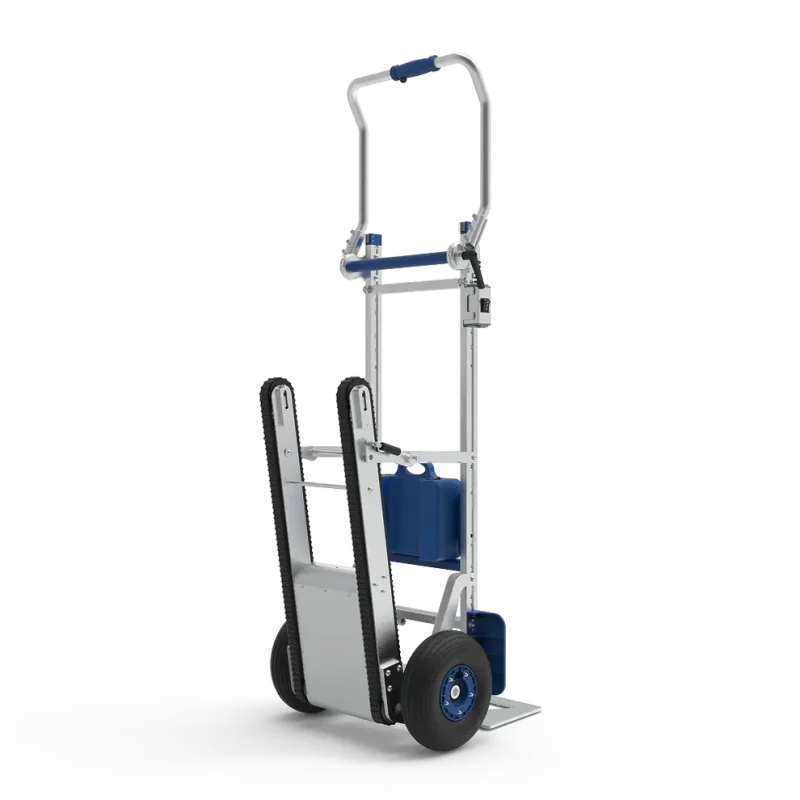 Thanks to a sophisticated double motor, the machine can rotate completely within very narrow spaces. This means no matter how many landings your staircase has or how your stairs are structured, you can get your equipment where it needs to go.