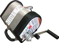 These winches are designed with a unique input drive hub that allows for switching between manual crank and powered operation. The manual operation remains as a backup in the event of power failure or mechanical problems.
